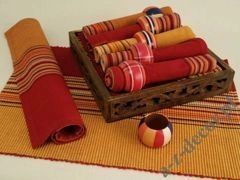 Wśród oferowanych tekstyliów domowych znajdziesz jednobarwne serwetki, bieżniki na stół, różnego rodzaju podkładki bawełniane, oraz duże, nawet 3-metrowe obrusy.