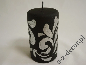 • Pillar candle 9x15 cm. Black velvet surface with silver fiorentino decoration with silver glitter.