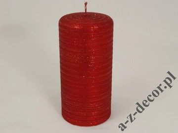 Red velvet brushed pillar candle with glitter 15cm [AZ01742]