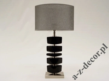 • LINA table lamp 30x15x55 cm. Black ceramic - Nickeled metal base - Acrylic crystal rings - Silver Linon shade.