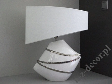Glazed ceramic lamp body in an white colour - silver hand finish - Oval Shade.