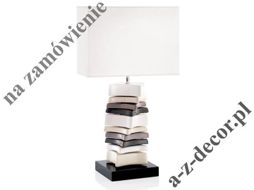 • CAREA table lamp MI 35x18x60cm with twisted pilling-up of ceramics in mineral light tones and black wood base. White cotton shade 35x18x25 cm. E27 | Max: 60W | 230V