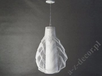 - Original moire NEST pendant lamp with inner cone shaped lampshade. The lamp is made of thin wires painted in white. Lamp dimensions: 38x54 cm.