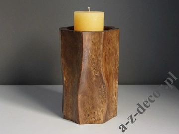Product made of one piece of mango wood, painted in medium brown color. Use for the candles in the shape of cylinder or ball. Overall dimensions: 10x15 cm.