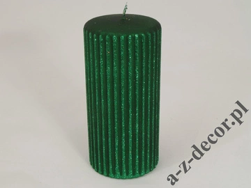 Pillar candle with green glitter ribs 15cm [AZ01740]