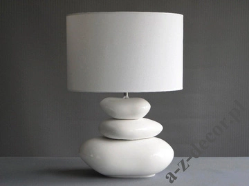 - KEIKO table lamp with ceramic base made of three white glazed elements resembling river stones. The dimensions of the lamp are 40x27x57 cm (width x depth x height), Topped with the oval cotton lampshade 40x27x25 cm.