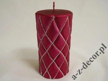 Świeca walec wiśniowy welwet z brokatem15cm [AZ01999]