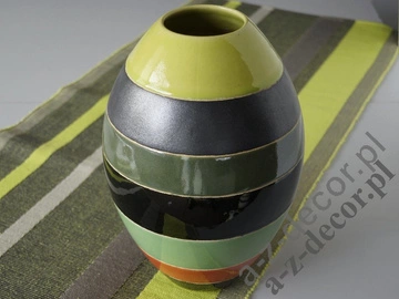 - Wazon ceramiczny o klasycznym kształcie i niezwykle bogatej palecie z dużym wyczuciem zastosowanych kolorów: dzika limonka, matowa czerń, szałwia, zieleń młodego ryżu, głęboka czerń i ciemna pomarańcz.