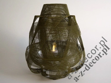 Świecznik SIRI w całości wykonany z cienkich drucików malowanych proszkowo na kolor ciemno zielony. Wymiary świecznika: 24x29 cm.