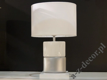 - Lampka nocna wykonana z białej i srebrnej ceramiki o wymiarach 25x15x40 cm. Abażur biały, owalny o wymiarach 25x15x17 cm.
