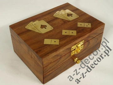 Pudełko drewniane 15cm zawierające domino i karty [AZ01560]