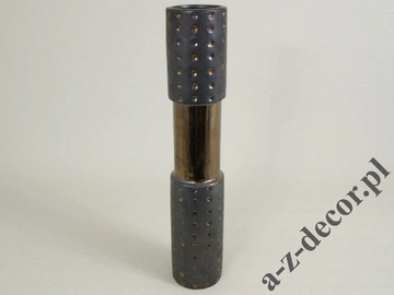 - Wazon ceramiczny DOTS o oryginalnym kształcie przypominającym hanlet do ćwiczeń siłowych.Na grafitowym, matowym tle widoczne szkliwione kropki w kolorze miedzianozłotym podkreślające wyszukaną formę.