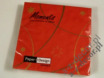 Czerwone serwetki papierowe trzywarstwowe 33x33 cm z wytłaczanymi gwiazdkami. 16 sztuk w jednym opakowaniu.