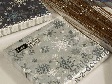 • Serwetki papierowe trzywarstwowe 33x33 cm z motywem płatków śniegu. 20 sztuk/opakowanie.