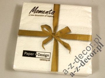 Białe serwetki papierowe trzywarstwowe 33x33 cm z wytłaczanymi napisami. Opakowanie zawiera 16 sztuk serwetek.