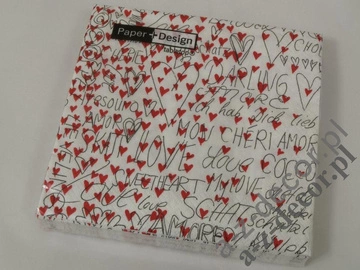 • Serwetki papierowe trzywarstwowe 33x33 cm. z motywem serduszek, 20 sztuk/opakowanie.