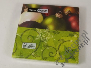 • Serwetki papierowe, trzywarstwowe 33x33 cm z motywem bombek świątecznych. 20 sztuk/opakowanie.