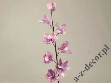 - Gałązka cymbidium składająca się z ośmiu kwiatów z różowymi płatkami i delikatnymi akcentami fioletu. Kwiaty wykonane są z elementów roślin wodnych o nazwie 'Solar Plants'. Wysokość gałązki 109 cm.