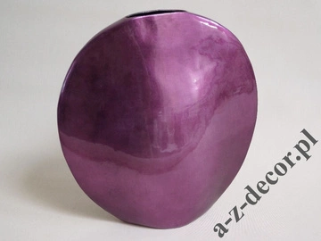 Wazon ceramiczny o niezwykle nowoczesnym kształcie przypominającym płaski dysk, w kolorze ametystu z metalicznym połyskiem. Nawet bez kwiatów będzie stanowić oryginalną dekorację wnętrza. Jego 'odważny' kolor pomoże przełamać monotonię spowodowaną minimalistycznym wykorzystaniem innych kolorów w pomieszczeniu. Niestety nie mamy już zbyt wielu egzemplarzy do zaoferowania.